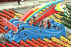 建國五十周年國慶群眾游行隊伍中的“國民經濟發展新的活力” 方陣中,突出了“促進非公有經濟健康發展”的彩車。(本社記者人民大會堂制高點傳真)作者:任晨鳴