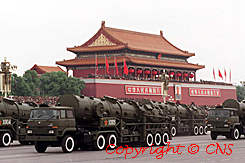 中國第二炮兵部隊裝備的遠程地地核導彈十月一日出現在國慶閱兵式上,十分引人注目。作者:錢興強
