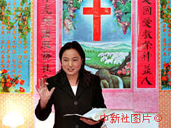 在河南省漯河市源匯區干河陳鄉干河陳村的基督教家庭聚會上,陳苗花為教徒讀經。作者:任海霞