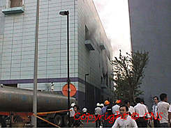新竹科學園區的一家電路動力廠震后,因電力負荷過度而發生火災。 中新社臺北傳真