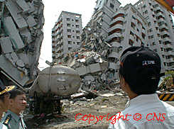 臺中市一幢大樓經不住強震倒塌,情況觸目驚心。