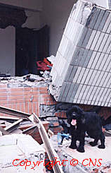 臺(tái)中地震災(zāi)區(qū)一只小狗在廢墟徘徊。中新社傳真梁玉驥攝