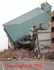 臺灣地震災區二十八日又多次發生五級左右余震,許多倒垮的樓房險象環生。中新社傳真梁玉驥攝