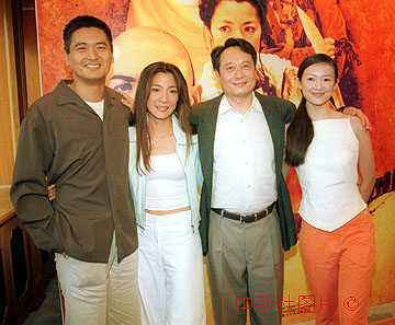 導演李安、影星周潤發、楊紫瓊、及章子怡26日在香港出席影片“藏龍臥虎 ”記者會。中新社傳真 鄧慶樂 攝