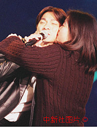 女歌迷擁吻獲華語歌曲排行第一的劉德華