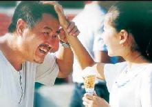 7月26日,《幸福時(shí)光》在大連旅順開機(jī),董潔有幸成為“幸福女孩”。 劇中的盲女孩個(gè)性很孤立,但經(jīng)歷了一些事情后,逐漸從防備別人到接受身邊的人,顯露出小女孩可愛的一面,對(duì)生活又充滿了希望。董潔覺得她和劇中的角色挺接近的,都是普普通通的女孩子,“最大的不同就是她是盲人。” 兩個(gè)月的拍攝過程中最讓董潔難忘的是第一場(chǎng)戲。“那場(chǎng)戲是哭戲,當(dāng)時(shí)劇組剛開機(jī)四天。一開始我的壓力并不大,心里想拍攝時(shí)只要想些悲傷的事就能哭出來(lái),因?yàn)槠綍r(shí)我看電視就很容易感動(dòng)。但是真正拍攝的時(shí)候,現(xiàn)場(chǎng)突然一下子靜悄悄的。我剛要哭出來(lái),眼圈都紅了,這時(shí)我一下子聽到膠片轉(zhuǎn)動(dòng)的聲音,注意力馬上分散了,怎么也哭不出來(lái)。最后這場(chǎng)戲反反復(fù)復(fù)拍了好多次,導(dǎo)演才通過! 開始的不順利并未影響到董潔的狀態(tài)。“因?yàn)閯〗M的人對(duì)我太好了,他們都把我當(dāng)成小妹妹看待。經(jīng)常對(duì)我說你第一次演戲,才拍了這么幾天,能演成這樣就已經(jīng)很不錯(cuò)了。張導(dǎo)演也時(shí)常鼓勵(lì)我,告訴我不要著急。我從來(lái)沒看見導(dǎo)演在現(xiàn)場(chǎng)發(fā)火,當(dāng)我進(jìn)入不了狀態(tài)時(shí),他會(huì)耐心地啟發(fā)我。他不會(huì)讓我事先背臺(tái)詞、設(shè)計(jì)小品,都是到了拍攝現(xiàn)場(chǎng)再給我講劇情,盡量讓我輕松、自然地表演!倍瓭嵳f導(dǎo)演從來(lái)沒當(dāng)面夸過她,更沒說過她的表演已經(jīng)超過了誰(shuí)。不過有一點(diǎn)是肯定的,就是每場(chǎng)戲只有導(dǎo)演滿意了,才能通過。 在董潔眼里,張藝謀是個(gè)精力充沛的人,“他那時(shí)需要處理的事兒很多,除了拍戲,他還要籌備‘申奧片’和執(zhí)導(dǎo)舞劇的事。我覺得他做事井井有條的,不會(huì)忙了這個(gè)忘了那個(gè)。” 劇中董潔和趙本山的對(duì)手戲很多,她說趙老師是個(gè)特別和善的人,在表演上給了她很多幫助。“每一場(chǎng)戲開拍前,趙老師總是主動(dòng)先跟我搭一遍。說臺(tái)詞時(shí)他會(huì)告訴我盡量用生活中的語(yǔ)氣,然后一字一句地示范。拍戲這段日子我感覺趙老師是個(gè)特別受歡迎的人,我們到居民樓拍戲時(shí),許多人都等著看他,他不管做什么,大家都笑!