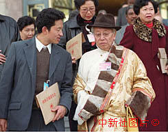 全國政協(xié)委員林倉·晉美(藏族)三日在翻譯陪同下出席全國政協(xié)九屆三次會議開幕大會。作者:陳勇