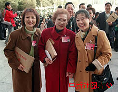 出席全國政協九屆三次會議開幕大會的全國政協委員、著名演員王馥荔(右)、秦怡(中)等三日手拉手步入北京人民大會堂。作者:王麗南