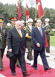 土耳其總統(tǒng)德米雷爾在4月19日在總統(tǒng)府舉行儀式,熱烈歡迎江澤民對土耳其進行國事訪問。中新社記者 彭偉祥 攝