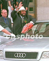 歌王帕瓦羅蒂21日13時參加在北京飯店舉行的新聞發布會后,向人們招手示意,并乘坐奧迪公司專門提供的A8高級轎車前往機場飛赴韓國,23日返京進行演出。中新社記者 趙振清 攝