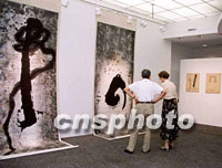 中國畫家秦風在歐洲游歷三年後于去年來到美國,勤奮探索現(xiàn)代水墨畫創(chuàng)作,日前在紐約亞洲文化中心展出他一九九七年來的代表作四十多幅,受到中外觀者好評。中新社記者 龔文謨 攝