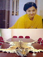 賴昌星用以打倒廈門海關關長楊前線的糖衣炮彈——美女和虎皮。上圖為美女名周兵,她為楊前線生了一個兒子。下圖為價值77.7萬元人民幣的華南虎皮。