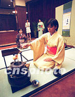日本古典文化藝術訪華團日前在北京政協為中國觀眾進行茶道表演,以展示日本獨特的古典文化藝術。中新社記者 史利 攝
