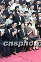 國務院副總理錢其琛十六日親赴南京紫金山下的國際會議中心,看望出席首屆世界華文傳媒論壇的代表,并與大家合影留念。中新社記者 王瑤 攝