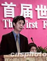 郭招金:關注全球化浪潮中的海外華文傳媒 2001年09月17日 08:03 ![]() 首屆世界華文傳媒論壇十六日在南京開幕,中國新聞社總編輯郭招金在開幕式上作《全球化浪潮中的海外傳媒的定位與角色》的發言。中新社記者 王瑤 攝