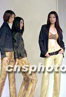 十位中國著名時裝設計師八月二十二日云集上海“中國國際服裝服飾博覽會高級成衣展”,共同演繹二○○一年最新時尚。圖為二○○○年中國最佳職業時裝模特排名第一的姜培琳(右)領銜主演。中新社記者 潘索菲 攝
