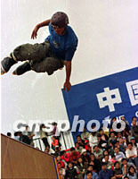 2001年亞洲極限運(yùn)動(dòng)精英賽6日在浙江省湖州市落下帷幕,U字型輪滑的比賽異常激烈,北京選手趙康軍在比賽中發(fā)揮出了高水平,取得了較好的成績(jī)。中新社記者 趙振清 攝
