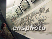 由海峽兩岸歷史博物館共同舉辦的《張大千繪畫藝術回顧展》二十五日在北京中國歷史博物館展出,參展作品均系張大千先生1928年至1978年間的佳作,其中來自臺北博物館的六十幅作品更是首次在大陸展出。圖為觀眾在品味大師的《蜀江圖卷》。中新社圖 武仲林 攝