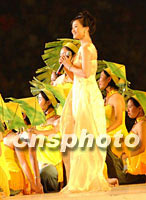 第九屆全國運動會十一日在廣州奧林匹克體育中心開幕,著名歌唱演員宋祖英在開幕上演唱《祖國的笑容多么美》。中新社記者 任海霞 攝
