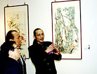 ![]() 閩藉畫家董希源中國畫展24日在廣州藝術博物院開幕,圖為董希源(右一)在向參觀嘉賓介紹作品。中新社圖 羅仰明 攝