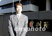 在靖國(guó)神社石獸上用紅漆噴寫抗議字樣、反對(duì)日本首相參拜的中國(guó)青年馮錦華10日被日本法院以“損害器物罪”判刑十個(gè)月、緩期三年。馮錦華結(jié)審后在法院前留影,以紀(jì)念這次難忘的經(jīng)歷。中新社記者 陶光雄 攝