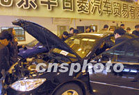 在今年第一個工作日元月四日辦理了海關手續的第一批新關稅進口轎車,六日在北京亞運村汽車交易市場開始銷售。此款豐田佳美轎車的新價格為四十五萬元人民幣,比中國加入世貿前降價十多萬元。中新社記者 李剛 攝