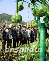 第四屆海峽兩岸花卉博覽會一月八日在福建漳州開幕,十三個國家和地區一千多家花商參展。展出的眾多名花異草和珍奇果木,引起觀眾的極大興趣。圖為種滿奇異瓜果的閩南瓜果園。中新社圖 華小銳 攝