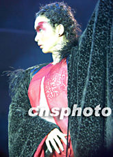 中國著名舞蹈家金星女士,日前在北京摩托羅拉舉行的新款手機推出活動上,表演現代舞《覺醒》。中新社記者 錢興強 攝