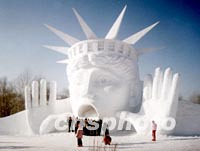 哈爾濱太陽島上,一尊表現女神看到世界巨變而作出驚訝狀的雪雕格外引人注目。這是島上正在進行的國際雪雕展中的一幅作品。全部作品出自二十多個國家藝術家之手,題材豐富、想象奇異。中新社圖 赫重運 攝