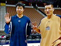 圖:王治郅和巴特爾在美國NBA賽場上對決