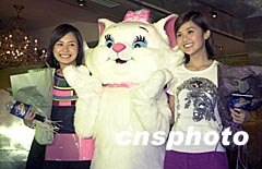 香港英皇娛樂11日舉行三周年慶典活動巡禮,公布連串鴻圖大計,其中少女組合Twins與Marie合作,暑期赴東京迪士尼樂園拍攝音樂特輯。中新社圖 鄧慶樂 攝