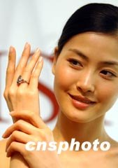 《香港佳士得瑰麗珠寶及翡翠首飾春季拍賣會》將于4月底在香港萬豪酒店舉行,16日模特周汶琦展示一枚色澤達最高級數的7·15卡拉梨形藍色鉆石戒指,拍賣估價約港幣二千多萬。中新社圖 洪少葵 攝
