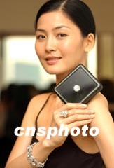 即將在香港佳士得春季拍賣會上拍賣的一套鉆石首飾,16日在香港展出。模特周汶琦演繹鑲有7顆重37、06卡拉鉆石手練和22、22卡拉的尖形鉆石戒指,及手持的20多卡拉足色全美圓形鉆石。估價總值港幣二千五百萬。中新社圖 洪少葵 攝