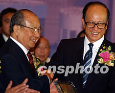 擁有一百萬潮藉人口、一百多個潮藉社團的香港,4月23日成立了“香港潮屬社團總會”, 主席陳偉男向出任榮譽會長的香港長實集團主席李嘉誠頒發證書。中新社記者 任晨鳴 攝