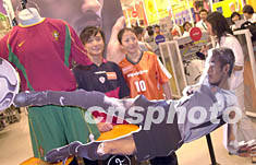 楊揚、方力申8日在香港出席運動用品連銷店GigaSports旗艦店開幕典禮。楊揚在美國鹽湖城冬奧會短道速滑賽中為中國奪得首枚冬奧會金牌;方力申是香港游泳紀錄保持者,現今在香港樂壇發展。中新社圖 鄧慶樂 攝