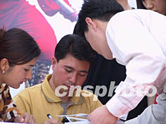 圖:“高空王子”阿迪力書市簽名義賣