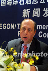 中國(guó)海洋石油總公司和荷蘭全球人壽保險(xiǎn)公司十三日在上海聯(lián)合宣布,兩家公司將按照相同比例共同出資組建一家合資公司,從而在中國(guó)開展人壽保險(xiǎn)業(yè)務(wù)。圖為全球人壽保險(xiǎn)公司執(zhí)行董事會(huì)主席唐仕德在此次新聞發(fā)布會(huì)上。作者:湯彥俊