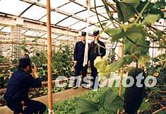 中國南沙群島永暑礁上的菜地,如今已換裝成不銹鋼大棚。五月的菜地里瓜果累累,一片綠色,生機勃勃,成為守礁官兵們休閑的好去處。中新社圖 李革平 攝