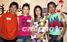 歌星李克勤、楊千嬅、陳文媛、周英杰(右起) 16日在香港出席新城電臺廣播劇「此時此地」記者會,廣播劇「此時此地」得到澳門旅游局的贊助,將配合和推動澳門旅游業的發展。中新社圖 鄧慶樂 攝