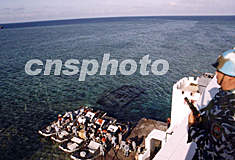 在中國海軍守礁戰士的警惕守衛下,南沙群島五月的物質運輸在有序進行,在臺風季節來臨之前一切就緒。李革平 攝