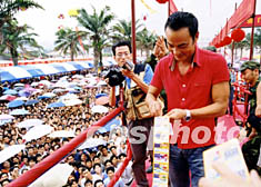 十九日下午,香港著名影星任達華專程來到珠海市,為該市福利彩票發行中心舉辦的“六千萬元即開型福利彩票發行活動”助興,為支持珠海市的福利事業,任達華當場拿出一千元購買福利彩票。中新社記者 石頭 攝