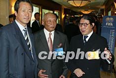 第五十三屆國際足聯(lián)全體代表大會二十九日在漢城結(jié)束,出席會議的香港代表霍震霆與國際足聯(lián)副主席鄭夢準(zhǔn)在一起交談。毛建軍 攝
