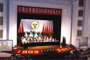 江澤民李鵬李瑞環為東南大學百年華誕題詞致賀 2002年06月01日 09:40 ![]() 東南大學建校100周年慶祝大會主會場 5月31日是東南大學建校一百周年的喜慶日子。樹木蒼翠、碧草茵茵的東大校園早早披上了節日的盛裝,四萬多名師生與海內外校友在久負盛名的大禮堂以及各分會場隆重集會,共慶母校百年華誕。 江澤民總書記為東南大學校慶的題詞是:“嚴謹求實,團結奮進,把東南大學建設成一流人才和創新成果的培育基地”。李鵬的題詞是:“傳承百年優良傳統,培育更多建國人才”;李瑞環的題詞是:“求是篤行,育才報國”。李鐵映、許嘉璐、費孝通,原中央大學校長顧毓琇等也為東南大學百年校慶題詞。 全國政協副主席錢偉長,全國政協科教文衛體委員會主任劉忠德,江蘇省有關領導陳煥友、曹克明,諾貝爾獎獲得者丁肇中,國家地震局局長宋瑞祥,教育部副部長周濟、韋鈺,科技部副部長劉燕華等出席了慶典大會。 國家教育部部長陳至立,中共江蘇省委書記回良玉、鐵道部部長傅志寰,中國工程院士丁衡高上將,臺灣“中央大學”校長劉兆漢專門發來了講話錄像或賀電。 大會由東南大學黨委書記胡凌云教授主持。東南大學校長顧冠群院士在慶祝大會上作了題為“秉承百年優良傳統,開創世紀新的輝煌”的報告。他說,東南大學肇始于1902年創立的三江師范學堂,此后,歷經兩江師范學堂、南京高等師范學校、國立東南大學、國立中央大學、南京工學院等重要發展時期,走過了一百年征程。現在的東南大學有10個國家重點學科,13個一級學科博士學位授權點,53個二級學科博士點;10個博士后科研流動站;現學校共有40多個院、系,104個碩士點,52個本科專業,是一所以工為主,工、理、醫、文、管多學科協調發展的全國重點大學。學校現有兩院院士7位,國家攀登計劃認知科學重大項目首席科學家1人,國家杰出青年基金獲得者8人,國家“百千萬人才工程”培養對象7人,國家“863”計劃領域專家委員會和主題專家組成員7人,國家重點基礎研究發展規劃(973)專家顧問組成員1人,教育部跨世紀人才基金獲得者13人,江蘇省“333工程”培養對象72人。“長江學者獎勵計劃”特聘教授崗位16個,現已聘特聘教授14人。百年東大,可謂是我國近現代高等教育發展的縮影。百年東大,為推動中國現代化進程和社會發展發揮了重要作用。校訓“止于至善”所寓意的追求盡善,追求完美,追求真理的辦學理念,已銘刻在今日東大人的心中。新的百年,我們必須培養大批具有創新精神和實踐能力的高級人才,使東大始終成為社會、經濟和科技進步與發展的思想庫和動力源。到21世紀中葉力爭把東南大學建設成為綜合性、研究型、國際化的世界一流大學。 最后,教育部副部長周濟在慶祝大會上發表講話,他希望東南大學樹立開放式辦學理念,通過為社會尤其是為江蘇提供全方位高水平的服務,來贏得支持,開拓學校改革與發展的廣闊空間。 美國馬里蘭大學校長牟德教授、重慶大學校長吳中福教授分別代表海內外兄弟大學在會上致辭,飛利浦公司執行副總裁萬德坡先生以及教師代表和學生代表等也在大會上講話或發言。印度尼西亞力寶集團董事長李文正先生也出席了大會。 5月31日,在20世紀偉大的物理學家吳健雄先生誕辰90周年之際,一座旨在彰顯其輝煌的科學業績和高尚的道德風范的紀念館在其母校東南大學隆重開館,為沉浸在建校100周年的喜慶氣氛中的東南大學增添了又一道亮麗的風景。國家教育部部長陳至立為吳健雄紀念館開館發來賀電。出席百年慶典大會的領導和嘉賓參加了開館儀式。中共江蘇省委副書記任彥申、華裔諾貝爾獎獲得者丁肇中博士、東南大學校長顧冠群院士、吳健雄先生之子袁緯承先生在儀式上致辭。 吳健雄是世界公認的最杰出的女性物理學家、世界物理學界的傳奇人物,被譽為“核子物理女皇”、“中國的居里夫人”。她1912年5月31日出生于江蘇太倉瀏河,1930年以優異成績被保送到東南大學前身——國立中央大學數學系,1931年轉入物理系。1936赴美深造。1957年她通過實驗首次驗證了“弱相互作用下宇稱不守恒”的理論,從而使李政道、楊振寧榮獲了當年的諾貝爾物理學獎。1997年2月16日,吳健雄在紐約家中去世。1999年,為紀念吳健雄偉大的一生及輝煌的科學業績,使她的科學精神和人格風范能長駐天地,激勵后學,中共中央、國務院批準在其母校——東南大學校園內建造吳健雄紀念館,這也是全球第一個華人科學家紀念館。 東南大學編輯出版的《吳健雄:獻身物理科學的一生》紀念畫冊首發式也與吳健雄紀念館開館儀式同時舉行。該畫冊由全國人大副委員長周光召院士題寫書名,李政道、楊振寧、丁肇中等六位諾貝爾獎獲得者分別為畫冊題詞。(鄭立琪、周 虹)