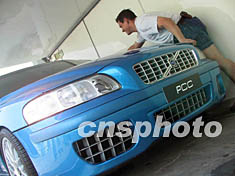 瑞典“VOLVO”(富豪)汽車公司的性能概念車“PCC1”,六月二日首次進入中國。此車將在六日開幕的北京國際車展中亮相。圖為“PCC1”正在北京出關卸車。中新社記者 杜洋 攝
