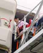 圖文:劉海若在SOS幫助下抵京 順利入住宣武醫(yī)院 2002年06月08日 18:58 ![]() 升降臺上的擔(dān)架把劉海若從機艙內(nèi)接出 中新網(wǎng)香港6月8日消息:在倫敦火車出軌事故中受傷昏迷的鳳凰衛(wèi)視女主播劉海若,在國際SOS救援中心的幫助下經(jīng)過長途飛行,于今天下午抵達北京,順利入住北京市宣武醫(yī)院接受繼續(xù)治療。 根據(jù)鳳凰衛(wèi)視的消息,依然昏迷不醒的劉海若在姐姐、姐夫和SOS醫(yī)護人員的陪同下,乘坐中國國航波音747飛機于北京時間2點25分左右抵達北京首都機場,2點45分被醫(yī)護人員用擔(dān)架抬出機艙,隨后即由救護車直接送往北京宣武醫(yī)院。 擔(dān)架上的劉海若還掛著點滴,她的全身被藍色毛毯緊緊裹住,頭部和胸部也被一個北京醫(yī)護方面事先準(zhǔn)備好的粉紅色大紗罩罩住。由于北京市宣武醫(yī)院準(zhǔn)備充分,劉海若的擔(dān)架一被抬下救護車就立即被送往住院部4層的神經(jīng)外科病房。 鳳凰衛(wèi)視董事局主席、行政總裁劉長樂和在北京工作的鳳凰同仁今天很早就趕到了機場等候劉海若的飛機,并一路陪同劉海若抵達宣武醫(yī)院。 北京宣武醫(yī)院治療腦神經(jīng)有豐富的經(jīng)驗,該院的專家凌鋒醫(yī)生曾于5月份專程前往倫敦探診劉海若,熟悉劉海若的傷勢病情,劉海若轉(zhuǎn)往該醫(yī)院繼續(xù)治療可以保持治療的連貫性。 相關(guān)報道:劉海若乘國航班機抵京 到宣武醫(yī)院接受進一步治療 相關(guān)報道:劉海若將于明天下午飛抵北京 宣武醫(yī)院準(zhǔn)備就緒 相關(guān)報道:劉海若仍昏迷不醒 家屬決定7日啟程赴北京治療 相關(guān)報道:家人證實劉海若將送京治療 凌鋒醫(yī)生將再赴倫敦