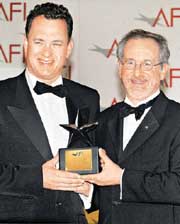 獲頒終身成就獎 湯姆漢克斯現(xiàn)場感言"太幸運"(圖) 2002年06月14日 10:19 ![]() 中新網(wǎng)香港6月14日消息:兩度勇奪奧斯卡影帝的湯姆漢克斯,當?shù)貢r間12日晚獲美國電影學院頒發(fā)終身成就獎,創(chuàng)下歷年來獲此殊榮最年輕得主的紀錄。丹澤爾-華盛頓、梅格-萊恩等明星好友都出席盛會。大導演史蒂芬-斯皮爾伯格親自為他頒獎。 今年7月將屆滿46歲的湯姆漢克斯,是本屆美國電影學院三十周年的終身成就獎得主。湯姆漢克斯在領(lǐng)獎時表示,他要感謝家人、觀眾這么多年來給他的支持與鼓勵;對于自己能夠從事演電影這一行,湯姆漢克斯的感想是“很幸運”。 據(jù)外電報道,頒獎典禮12日晚間在洛杉磯柯達劇院舉行,在好萊塢擁有極佳人緣的湯姆-漢克斯,眾多明星好友都前來觀禮,“星光閃閃”的臺下貴賓與臺上的頒獎典禮同樣看頭十足。 美國電影學院主席史春納日前曾表示,湯姆-漢克斯是“新一代美國電影的表率”,因此選定在美國電影學院三十周年時頒發(fā)終身成就獎給他。 湯姆漢克斯主演多部電影都是票房保證,包括《西雅圖不眠夜》、《電子情書》、《搶救大兵瑞恩》等。 相關(guān)報道:飲水不忘思源 奧斯卡影帝湯姆·漢克斯捐資母校 相關(guān)報道:湯姆漢克斯將獲美國電影學院頒發(fā)終身成就獎 相關(guān)報道:影帝湯姆漢克斯將加盟斯皮爾伯格新片演出 相關(guān)報道:周潤發(fā)有機會與湯姆·漢克斯合作演繹華人 相關(guān)報道:湯姆·漢克斯與斯皮爾伯格合作最昂貴的電視劇