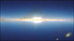 圖文:美國天文學家繪制出精美銀河系景觀圖 2002年07月02日 10:22 ![]() 銀河系景觀圖 中新網北京7月2日消息:美國馬薩諸塞州立大學的幾位天文學家花了五年時間,利用分別位于美國和智利的兩臺天文望遠鏡拍攝到的紅外圖像,組成了從銀河系外部觀看到的這一星系的景觀圖。 天文學家表示,這一景觀圖類似宇航員飛行到銀河系之外后觀看到的銀河系的結構和景況。上述兩臺望遠鏡將天空劃分成大約5萬條天帶,然后利用不同的紅外波對5億多顆星體進行了觀測。到目前為止,這兩臺望遠鏡已經為科學家提供了大量有關組成銀河系的星體結構和形狀的新信息。 研究小組的負責人馬丁·維恩伯格教授表示,上述景觀圖還只是由他們搜集到的一小部分圖像組成的,他說:“通過對某顆星體的紅外顏色比率進行分析我們可以確定星體的整體顏色,然后將這一顏色匯集到銀河系景觀圖當中,隨著研究的深入,這一景觀圖將變得更加豐富,從而有助于天文學界人士從中獲得更多有用的信息。”