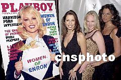 《花花公子》雜志將前安然公司女職員作為封面女郎推出。(從左到右)多倫多分公司的辛西婭·科格赫蘭、波特蘭分公司的克里斯蒂·尼爾森和曼哈頓總部的洛倫佐6月27日應邀出席關于他們以前的公司的聊天采訪的新聞發布會。IC/cnsphoto 攝