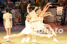 中國人民解放軍軍樂團八日晚在澳門綜藝館舉行精彩演出,圖為演出的“女兵舞”給觀眾留下了深刻的印象。李剛 攝