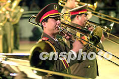 中國人民解放軍軍樂團八日晚在澳門綜藝館舉行精彩演出,澳門特區行政長官何厚鏵、全國政協副主席馬萬祺、中央政府駐澳門特區聯絡辦公室主任白志健等出席觀看演出。李剛 攝